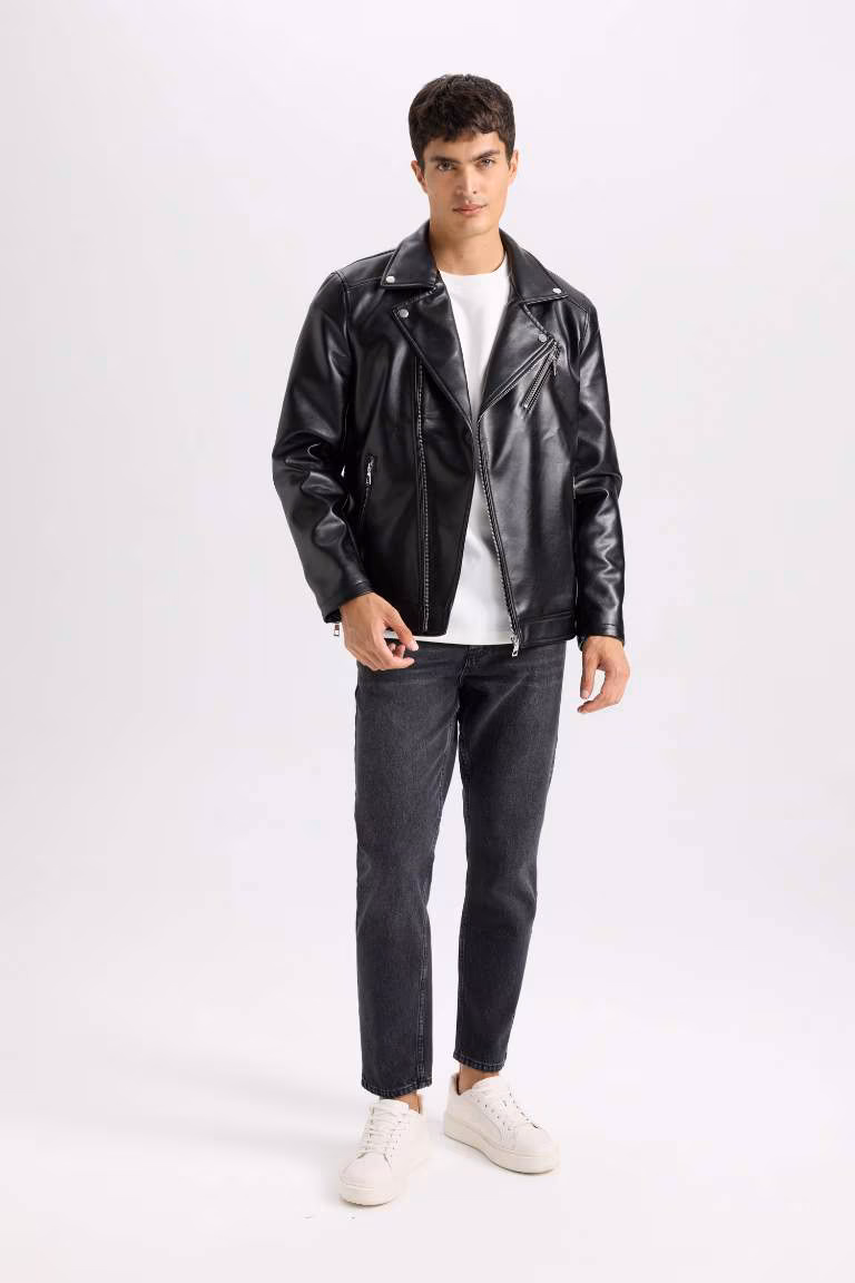 Slim Fit Dar Kesim Polo Yaka Astarlı Fermuarlı Suni Deri Mont adet